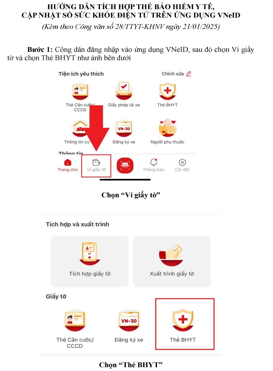 Hướng dẫn tích hợp thẻ bảo hiểm y tế, cập nhật sổ sức khỏe điện tử trên ứng dụng VNeID