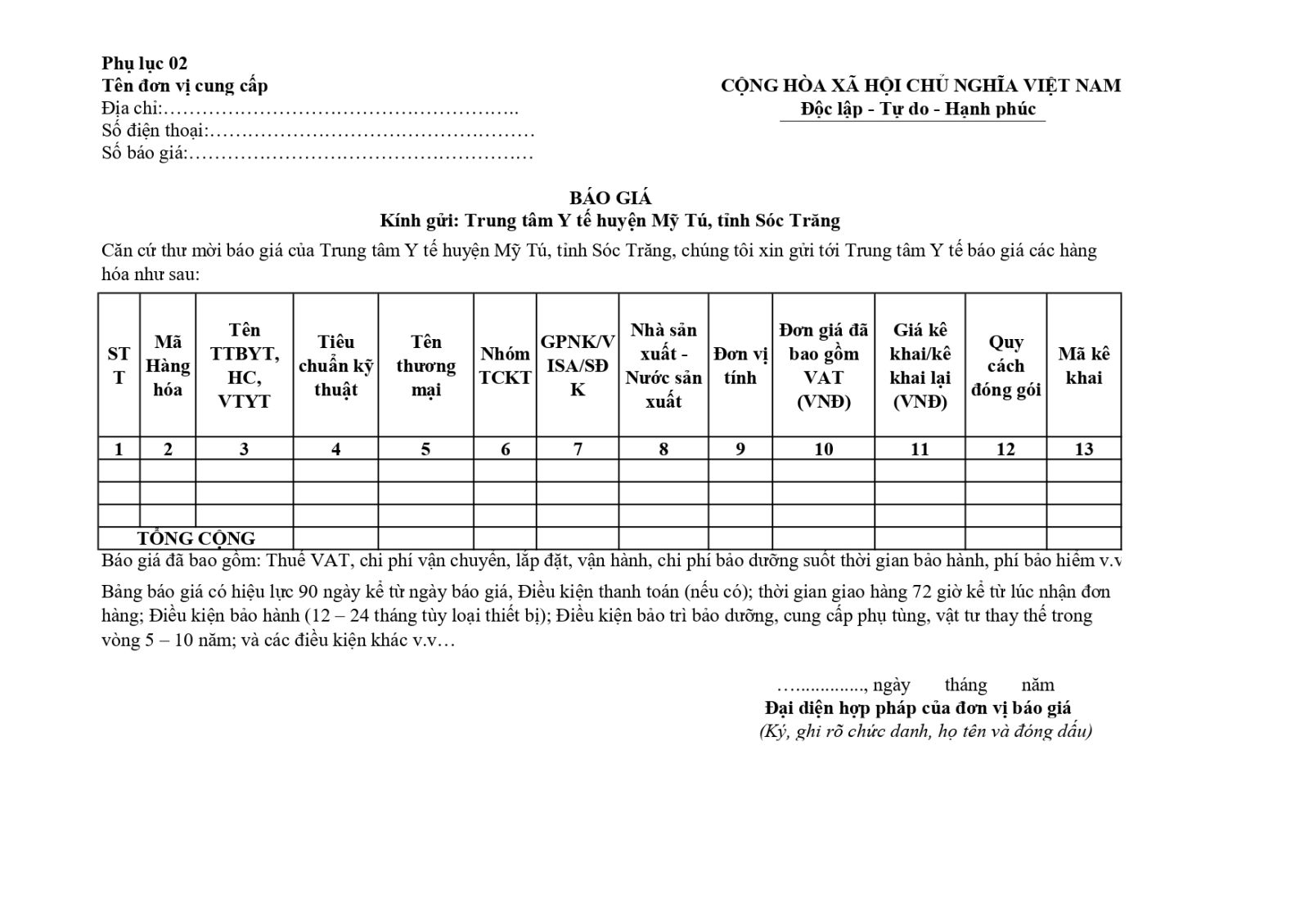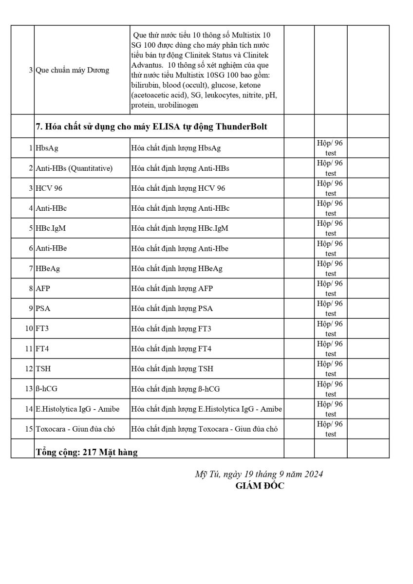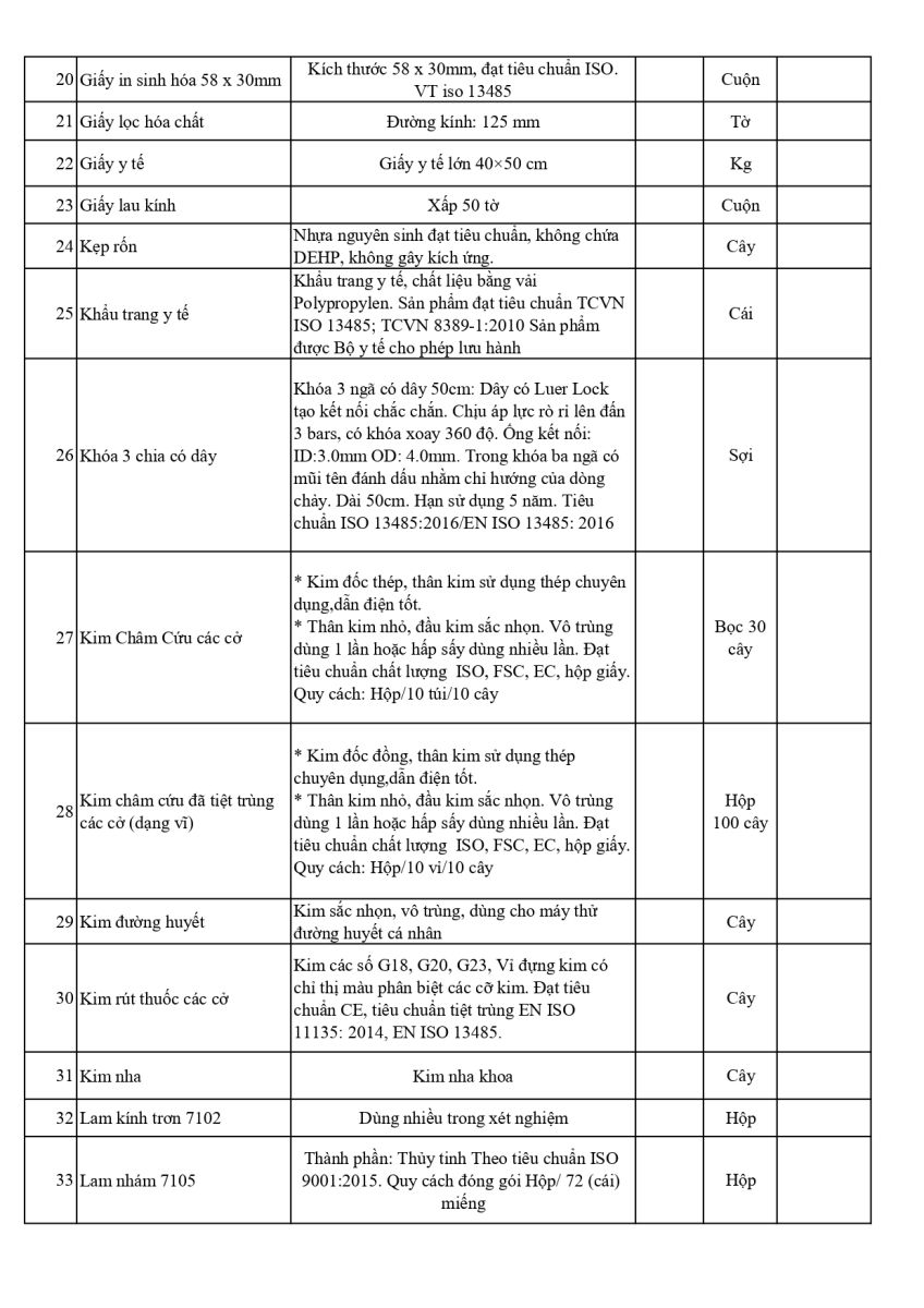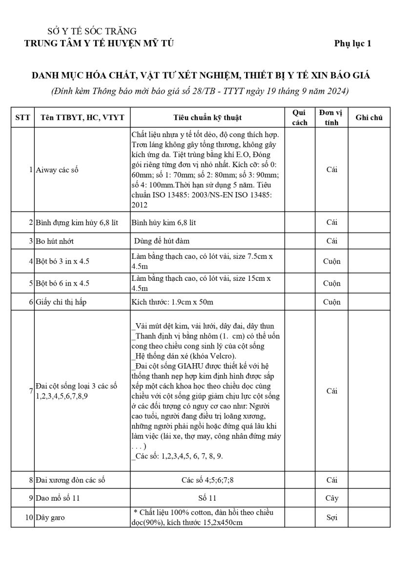 THÔNG BÁO MỜI BÁO GIÁ HÓA CHẤT, VẬT TƯ, TRANG THIẾT BỊ Y TẾ NĂM 2024